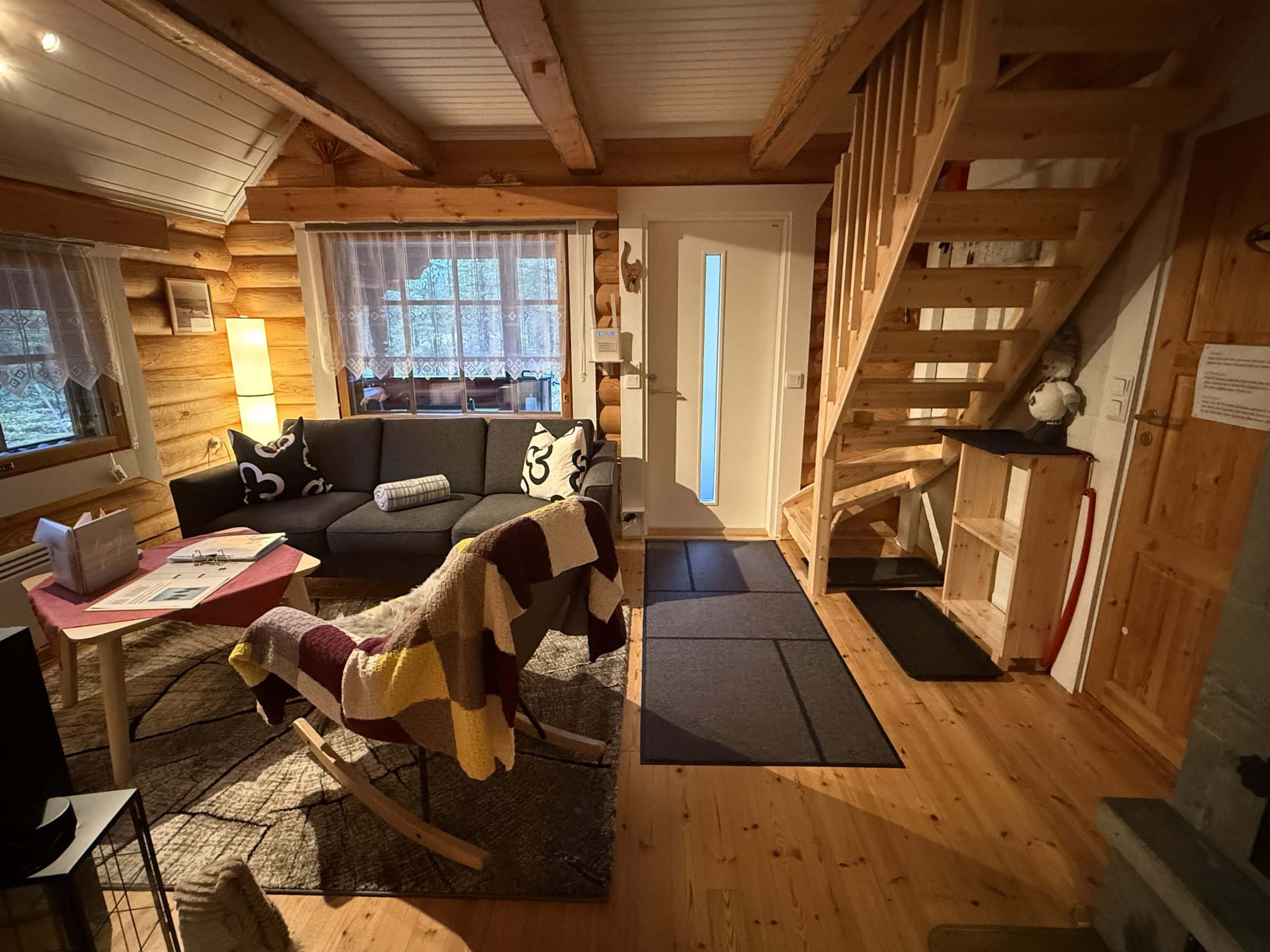 First floor includes: Living room with fire place, kitchen, toilet, shower, electric sauna and Wi-Fi.